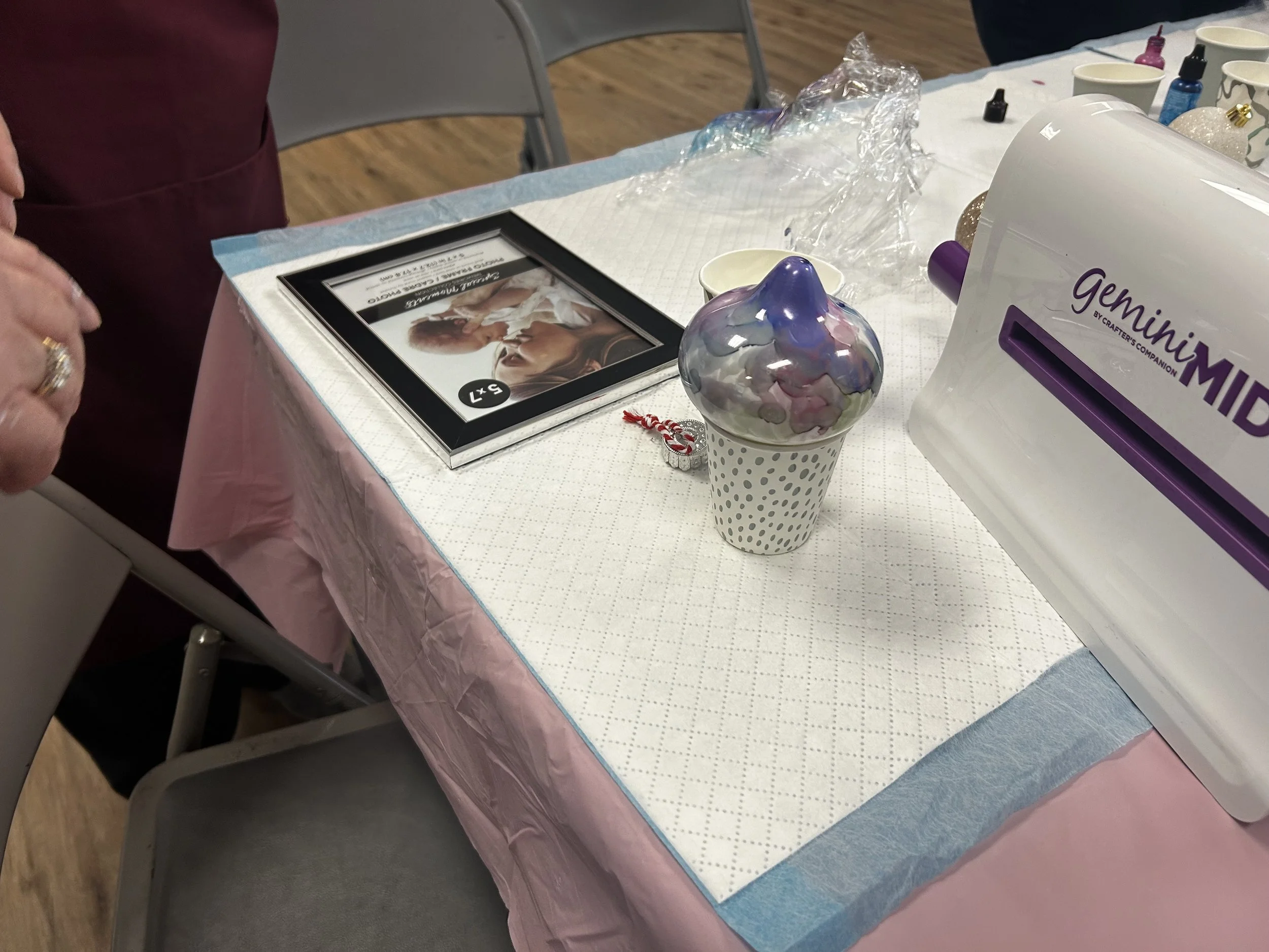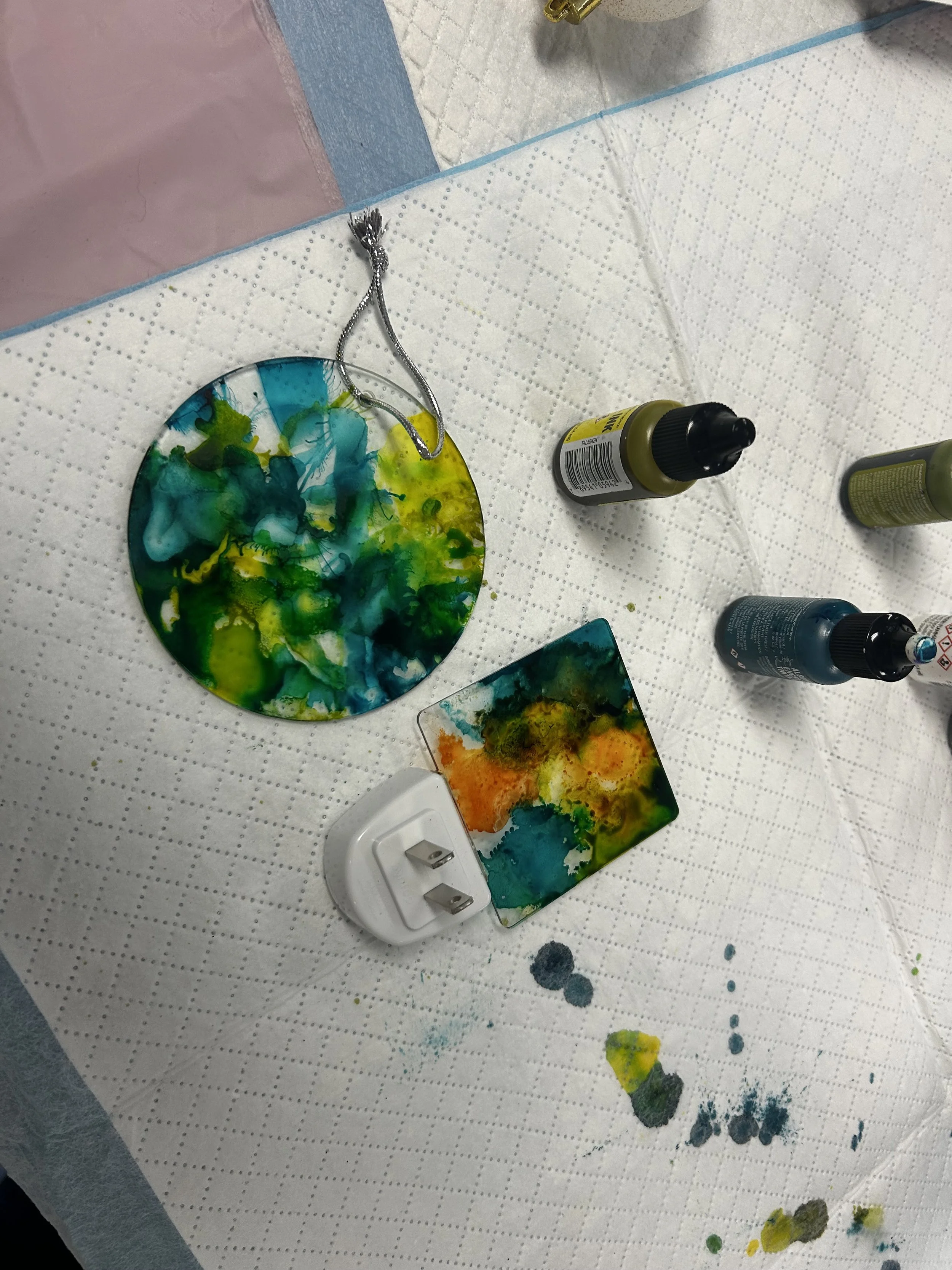 We had a fun September meeting doing alcohol inks with Gloria Greaves. We created lots of unique ornaments, nightlights and picture frames.